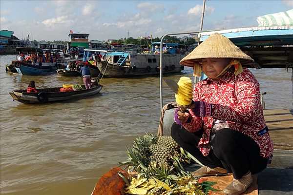 Dagens utflykt går till Mekongdeltat. Vi börjar med att åka till hamnstaden My Tho som ligger vid Mekongdeltat. Ca hälften av Vietnams jordbruksprodukter kommer från detta bördiga delta. Framme vid deltat kommer vi att kliva ombord på en båt för att se byarna och livet som kretsar kring kanalerna och floderna. Vi besöker en ö med sina frodiga tropiska fruktodlingar. Vi får även se tillverkningen av kokosgodis innan vi förflyttar oss till mindre roddbåtar som tar oss längre in i de smala kanalerna.